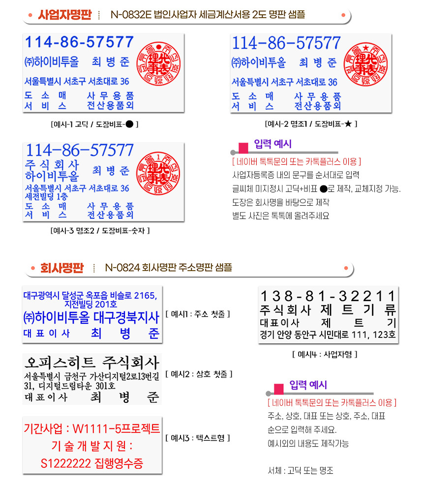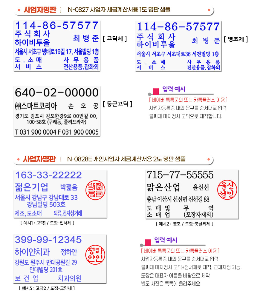 예시를 참고하여 입력내용을 톡톡이나 카톡에 입력해주세요.